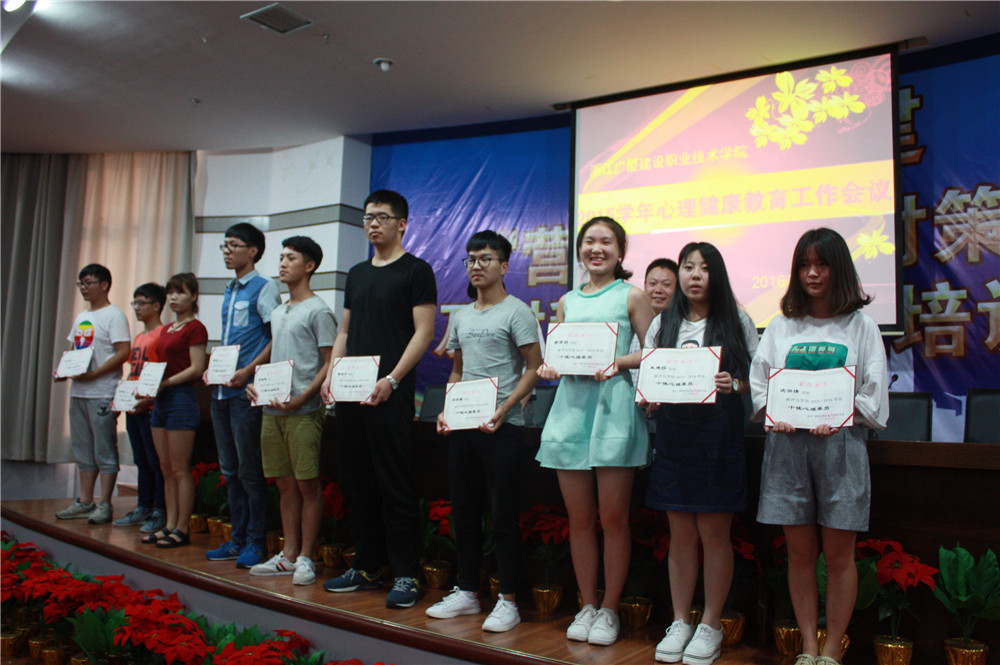 会议表彰了2015-2016学年十佳心理委员,并对103名2015级心理委员发放聘书。