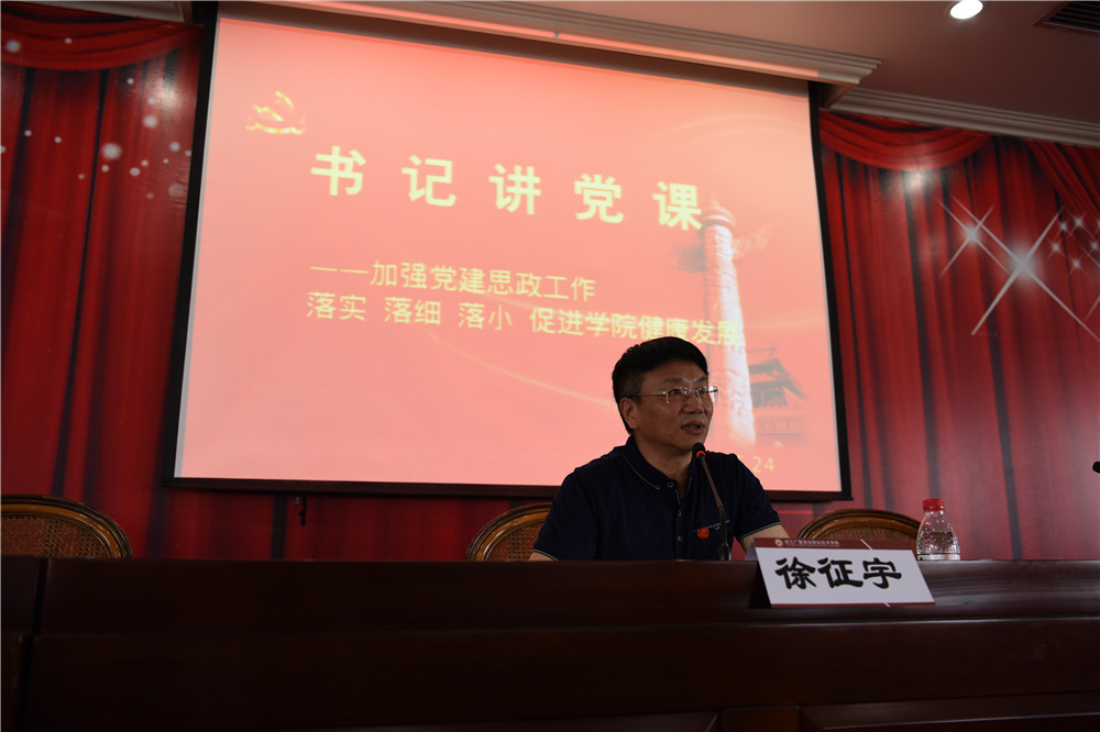 5月24日下午,学院党委书记徐征宇以《加强党建思政工作,落实落细落小,促进学院健康发展》为题讲授了专题党课,学院中层以上干部、全体教职工党员和在校学生党员参加。这次书记讲党课是学院党员活动日系列活动里的一项内容。