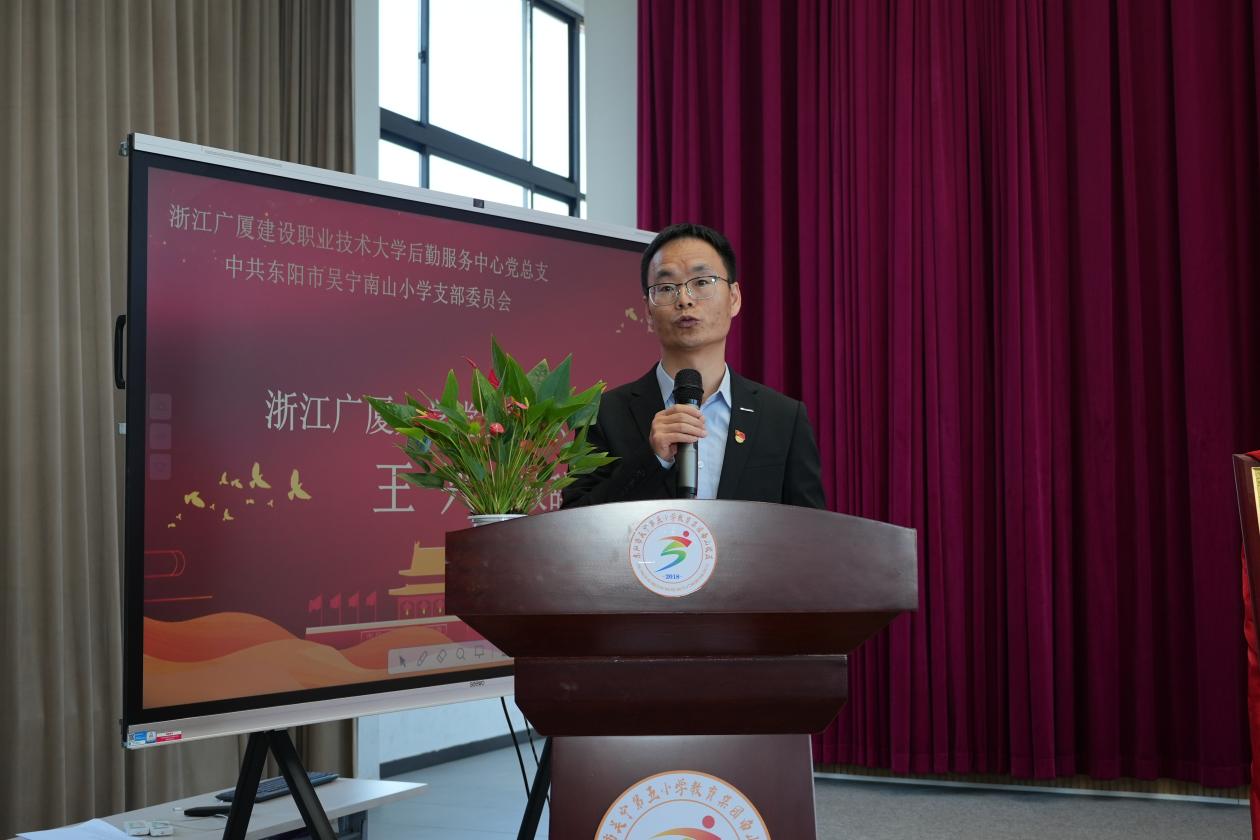 签约仪式后,浙江广厦大学党委委员、副校长王兴发表了热情洋溢的讲话,表达了对此次合作的美好期待,并强调了“联学联建”对于促进双方共同发展的重要性。东阳市吴宁南山小学书记、校长郭俊华也分享了对此次合作的看法,表示将充分利用此次机会,加强两校之间的交流与合作,共同推动教育事业的发展。